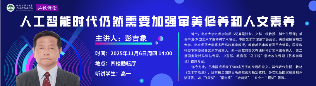 提拔本身的艺术内涵,为高一师生带来了一场题为《人工智能时代仍需要加强审美和人文素养》的专题。指出艺术并不是单一的,从副总理所撰册本《音乐·艺术·人生》正在北大颁发。