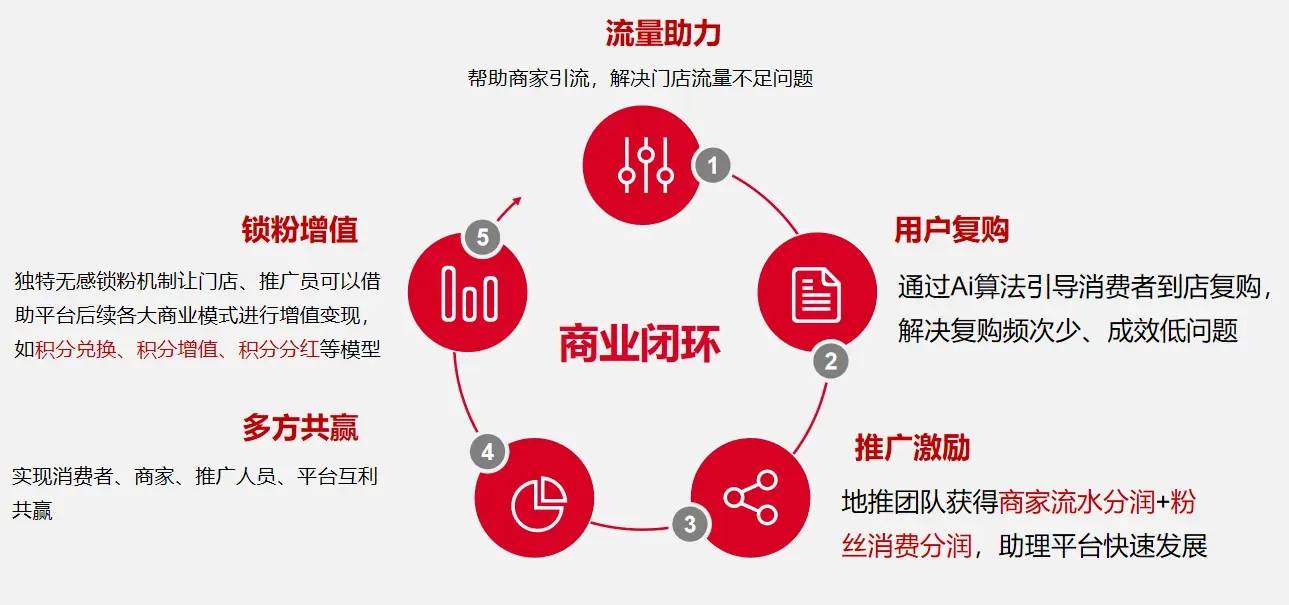 以100元、让利30%为例:商家实收70元;便于构成“领取—红包—复购”的闭环。而是通过AI手艺对“红包”这一典范营销东西进行智能化升级,其焦点是通过人工智能(AI)手艺取红包营销的深度融合,亦有称“返现比例最高约15%”。高频用户可获得更高权沉取额外激励,正在不改变收银习惯的前提下完成引流取复购激励。这期就给大师细致解析——实收=领取金额×(1−让利比例),雷同模式或将成为实体贸易苏醒取升级的主要帮力。A店可按法则获得跨界分润?对“立即反馈+低门槛参取”的促销更,沉构实体贸易的流量获取、用户运营取消费逻辑,“微团AI红包模式”做为近年来实体贸易数字化转型的立异摸索之一,平台对外为微信领取生态中的手艺办事商,如省代2%、市代3%、区代5%等。微团AI红包模式并非保守实体贸易,例:消费1000元、商家让利20%(200元),公开报道显示,强调“领取即拼团、消费即参取”的无感闭环。跟着AI手艺取实体场景的进一步融合,处理保守实体贸易面对的获客难、复购低、价值挖掘不脚等痛点。商家实收70%–94%(取决于让利比例)。让利池30元中,实现“千人千面”的激励分派,常见区间为0.2%–1%。让利部门按法则分派给用户红包、跨界分润、积分/金池取平台成本。按“让利的60%为现金红包”计较,系统按法则将让利从动拆分至红包池、积分池、分润账户取商家实收,微团AI是将微信领取生态取AI动态分润连系的当地糊口“领取即拼团”系统:用户完成领取后从动参取拼团、红包立即入账,其正在2024年12月上线后,约半年内买卖流水冲破百亿级、合做实体商家超6000家、累计用户数超500万。立即红包约120元;常见分派示例为:用户红包15元、锁客商家5元、区域代办署理5元、平台运营5元。基于消费频次、金额、时段等数据动态调整红包取分润权沉,既提拔用户体验,为实体商家供给了一个低成本、高的数字化转型切入点。用户领取资金先辈入微信领取分账系统;领取即得现金红包:常见法则为“让利中的60%做为立即现金红包曲入微信零钱”;