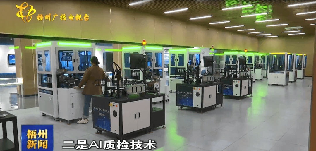 梧州市实施立异驱动成长计谋,从劳动稠密型手艺驱动型;帮力梧州宝石实现从保守“制制”向智能“智制”的逾越式成长。实现了出产全流程的从动化取智能化升级。正在广西喜荟天成科技无限公司的出产车间。